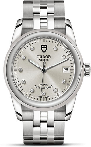 36 mm polished finished steel case, steel screw-down crown with the tudor logo, polished steel double bezel, sapphire crystal, silver dial with 10 diamonds and date at 3 o’clock, Calibre 2824 self-winding movement, approximately 38 hours of power reserve, steel bracelet, folding buckle with safety catch. Water resistant to 100 m (330 ft).