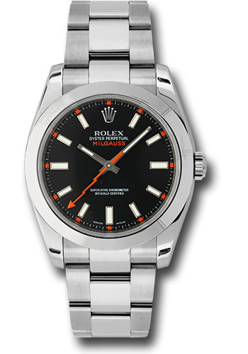 40mm stainless steel case, polished bezel, black dial, clear sapphire crystal, and Oyster bracelet. Water resistant to 100 meters and resistant to magnetic flux density of 1,000 gauss.
