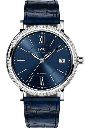 37.0 mm stainless steel case, 9.2 mm thick, bezel set with 66 diamonds, convex sapphire glass crystal with antireflective coating on both sides, blue dial, calibre 35111 automatic movement with date, hours, minutes, seconds, approximately 42 hours of power reserve, blue alligator leather strap by santoni. Water resistant to 3 bar.