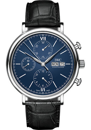 IWC Portofino Chronograph Watch - 42.0 mm Stainless Steel Case - Silver Dial - Black Alligator Strap