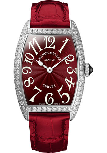 25.00 mm x 35.00 mm platinum case set with diamonds, red dial with white Arabic numerals, 1752 QZ quartz movement, approximately 2 years of power reserve, red hand-sewn alligator strap. Water resistant to 3 atm.