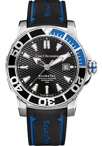 44.6 mm stainless steel case with automatic helium valve, 9.54 mm thick, screw down crown, stainless steel/ceramic bezel, sapphire crystal with anti-reflective coating on both sides, black dial, Caliber CFB 1950.1 automatic movement with chronometer, date, hour, minute and second, approximately 38 h of power reserve, black rubber strap, stainless steel buckle with diving clasp. Water resistant to 500 m.