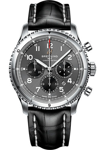 43.00 mm stainless steel case, 13.97 mm thick, screw-locked crown with two gaskets, cambered sapphire crystal with glareproof treatment on both sides, anthracite dial, Breitling 01 (Manufacture) self-winding movement, approximately approx. 70 hrs of power reserve, black alligator leather strap, folding buckle. Water resistant to 100 m (330 ft).