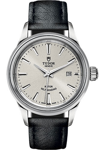 41 mm polished steel case, steel screw-down crown with the tudor logo in relief, smooth bezel in rose gold with polished finish, sapphire crystal, domed embossed silver dial with gold hour markers and hands, date at 3 o'clock, calibre 2824 self-winding movement, approximately 38 hours of power reserve, steel and rose gold bracelet, folding buckle and safety catch. Water resistant to 100 m (330 ft).